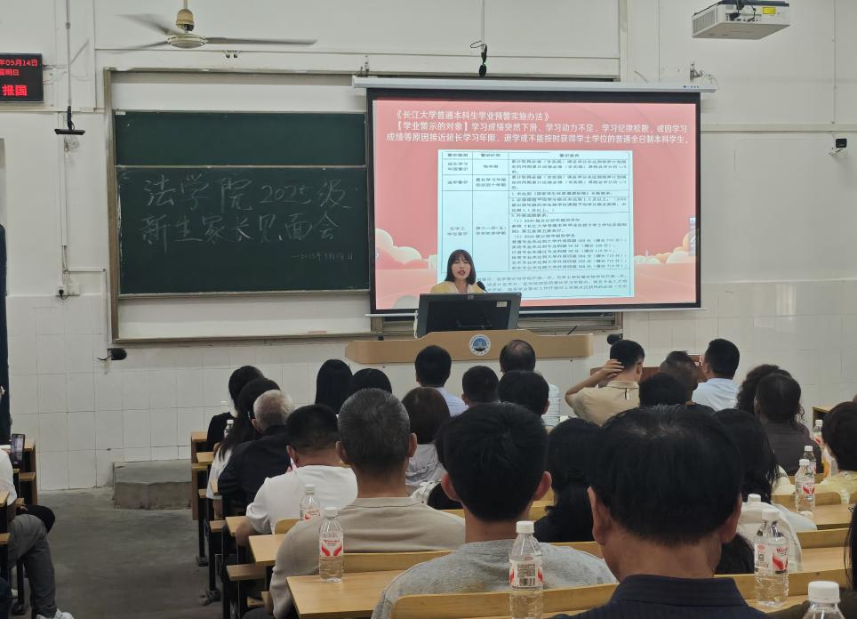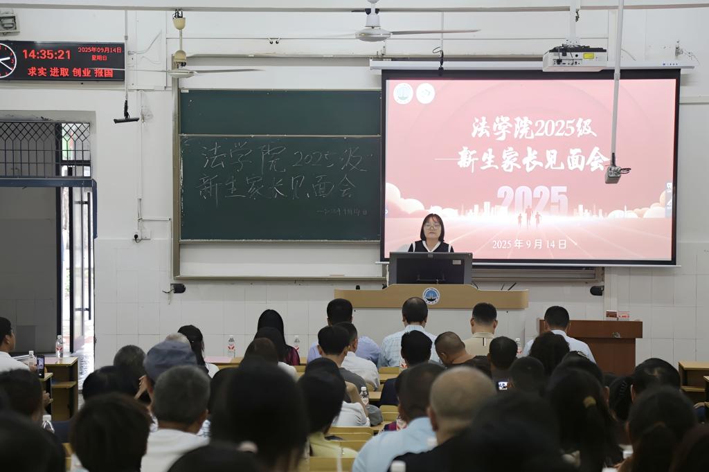(通讯员 李玉豪)9月14日下午,长江大学法学院2025级新生家长见面会在西校区2教T1隆重举行,会议由党委副书记严星主持,法学院党委书记张凡、院长李华成、副院长唐飞、副院长杨春磊及2025级新生辅导员、班主任、家长出席会议。