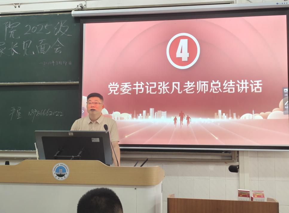 会议尾声,党委书记张凡发表总结讲话。他着重强调家校协同育人的重要意义,呼吁家长与学院保持密切沟通、形成育人合力;同时鼓励新生树立远大理想,以严谨务实的态度钻研法学专业知识,以积极饱满的姿态参与校园文化活动,在法学院的育人平台上成长为德法兼修的高素质法治人才。