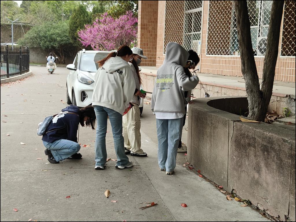 活动当天,大风阵阵,但同学们依旧佩戴统一的红色袖章,在指定地点快速集合分组。分发劳动工具后,大家顶着风势投入劳动:有的同学手持夹子,专注清理被风吹散的纸屑、烟头和塑料袋;有的同学挥动扫帚,细心清扫随风翻卷的落叶;带队老师和志愿者们也以身作则,与学生们默契配合,共同维护校园环境。