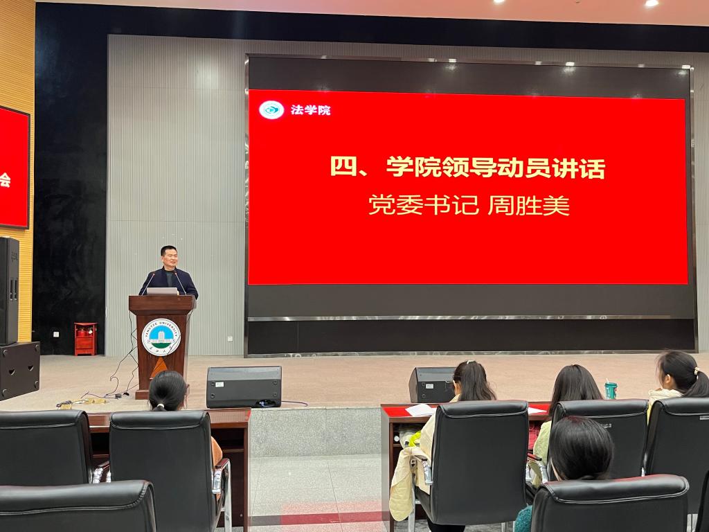 法学院党委书记周胜美最后做了考试动员。他结合学院往届优秀学子的成功案例,强调语言能力对法学职业发展的重要作用,鼓励同学们既要尽早制定职业规划,又要脚踏实地,提升个人实干能力。