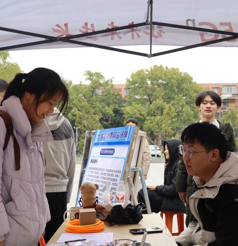 本次活动以摆点宣传和随机采访的方式展开,通过“文字+漫画”的创意形式呈现消费者权益保护法的重要条款以及常见的大学生权益受损案例,既为参与者提供了丰富的维权知识,明晰“新消法”六大亮点与相应权利,又向同学们展示了大学生常见的消费陷阱以及如何防范的相关办法。