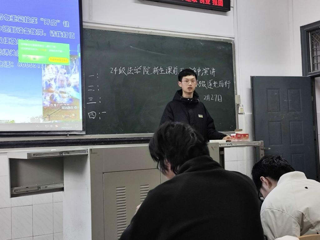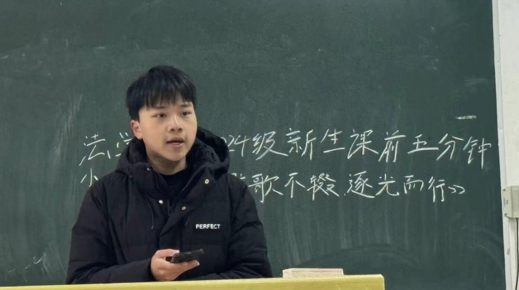 为激发学生在法学领域的理想信念,助力他们追逐法治梦想,长江大学法学院于2025年2月24日至2月28日成功举办了一场以“弦歌不辍,逐光而行”为主题的课前五分钟演讲活动。