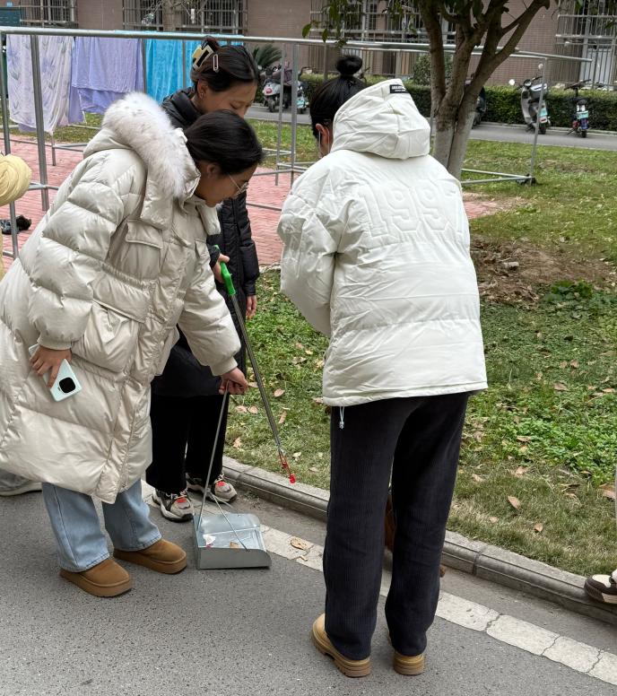 本次活动由法学院熠阳青年志愿者服务支队负责策划并组织执行,兼职辅导员肖芳与体育委员曾晓楠到现场指导,法学12203班与法学32401班的全体同学积极参与其中。同学们身着统一的红色袖章,在指定地点迅速集合,分成多个小组,领取了各式各样的劳动工具,以饱满的热情投入到此次实践活动中。