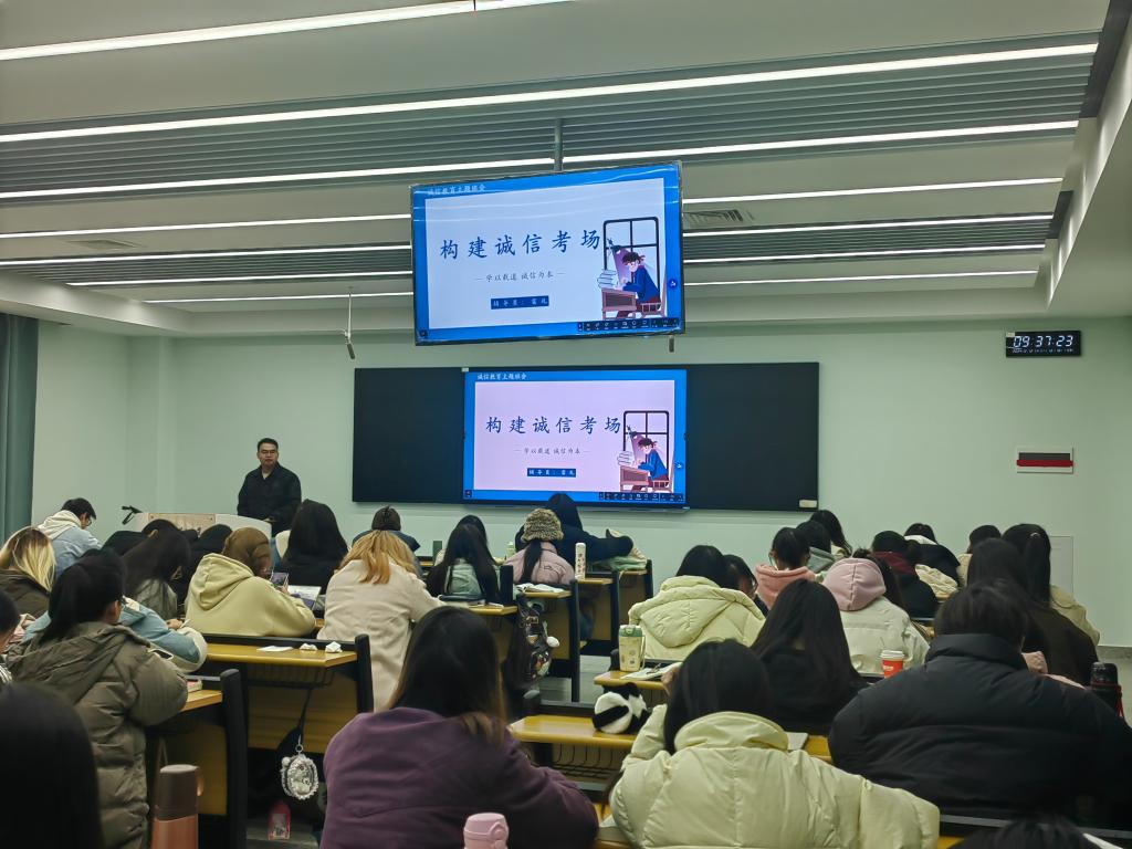 2024年12月10日—12日,长江大学法学院精心组织了一场以“诚信应考,严守规则”为主题的班会,此次班会旨在进一步增强学生的诚信意识,确保考试的公平与公正,为校园营造良好的学术氛围。