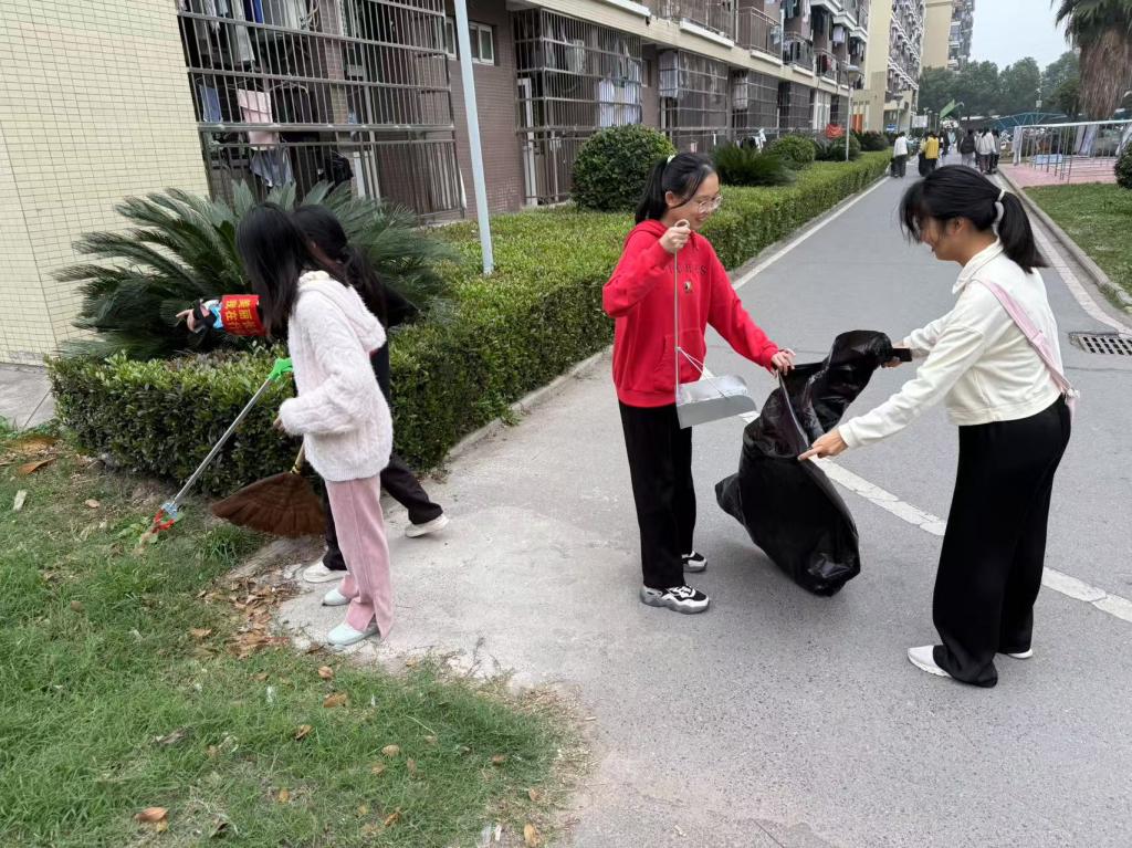 随着活动的正式启幕,14时,东校区的同学们已整装待发,他们迅速清点人数并分组,随后前往各自指定的清扫区域。与此同时,15时,西校区的同学们也紧随其后,投身到这场热火朝天的劳动中。在带队老师的悉心指导下,志愿者们手持夹子与垃圾袋,将路边的纸屑、烟头等废弃物一一拾起;他们挥动扫帚,将地面上散落的枯枝落叶清扫得干干净净,每一片区域都留下了他们辛勤劳动的身影。