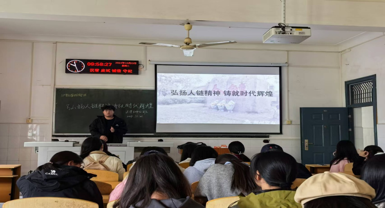 本次主题团日活动重点学习习近平总书记在庆祝中华人民共和国成立75周年招待会上的讲话精神,通过线下集中学习、交流讨论等方式,激励我院学子认真学习专业知识,将个人理想融入国家和民族的事业中;学习习近平总书记重要文章《大力弘扬伟大爱国主义精神,把强国建设、民族复兴伟业不断向前推进》,引领我院青年将爱国主义精神融入到日常工作和生活中,把学习成果转化为服务社会的实际行动;学习习近平总书记在中华人民共和国国家勋章和国家荣誉称号颁授仪式上的重要讲话精神,号召我院学子以英雄模范为榜样,坚决履行新时代青年的使命任务;学习习近平总书记给“银龄行动”老年志愿者代表的回信精神,同学们深切感受到老年志愿者们健康的心态和积极向上的精神;开展“弘扬人链精神,铸就时代辉煌”主题班会,不断加强学生的思想道德教育和安全教育。