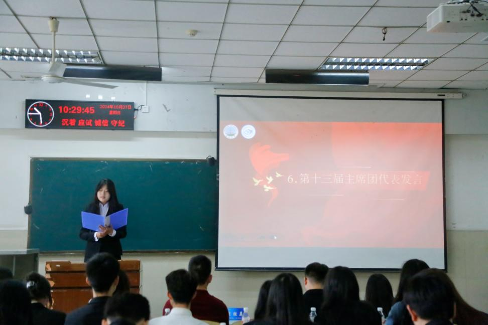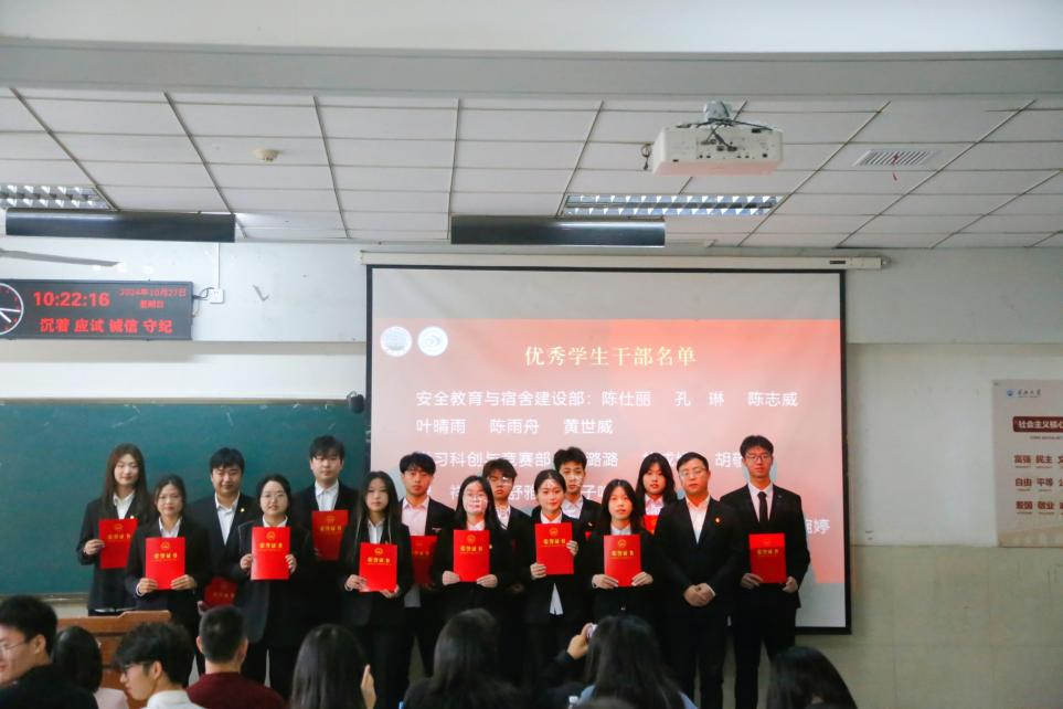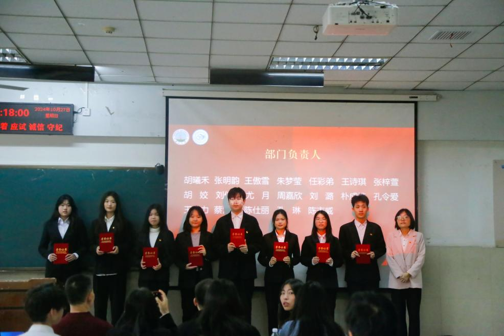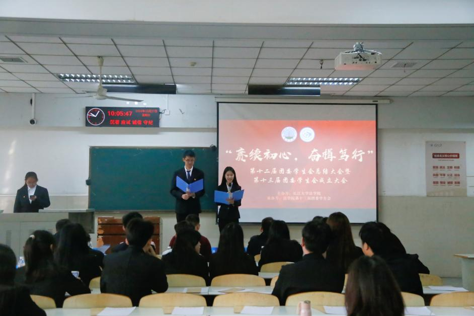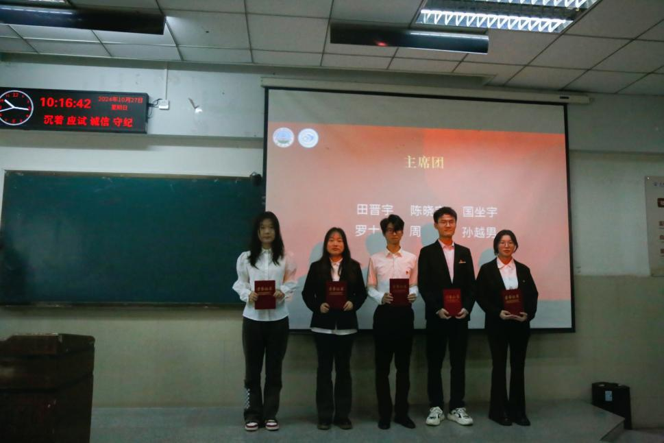 (通讯员李玉豪/文 杨雅淇/摄)2024年10月27日上午,长江大学法学院于东校区12教102成功举办第十二届团委学生会总结大会暨第十三届团委学生会成立大会。法学院党委书记周胜美,副书记严星,辅导员盛文军、雷礼、吴敏出席会议,第十二届、第十三届团委学生会全体成员共同参会。