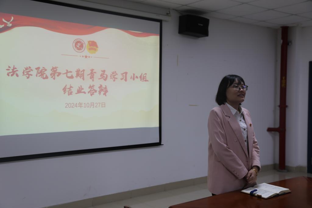 (通讯员 周艳)2024年10月27日下午,长江大学法学院第七期青马学习小组结业仪式于文科大楼1110会议室举行。本次活动由王玉华主持,法学院党委副书记严星、辅导员雷礼、吴敏出席活动,第七期青马学习小组全体成员参加。