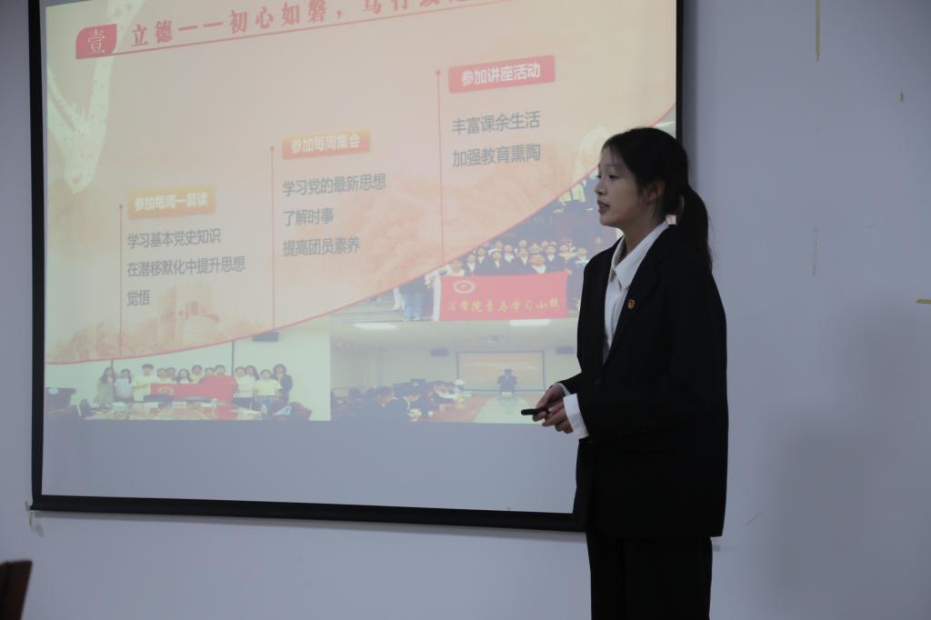 活动伊始,在学员个人成果分享环节中,学员们纷纷表示,有幸与青马相遇,感谢老师们和学姐们的悉心培养。其中,任易慧的分享娓娓道来,从思想信念、学业成绩、科研竞赛、综合素质、学生工作、社会实践六个方面总结了她在青马学习小组的成长与收获,并立志将青马的火种代代传承下去;郑欢从思想、学习、能力和生活四个方面出发,分享了她的学习和经验,并祝愿大家聚是一团火,散是满天星,行而不辍,未来可期;聂宇欣从立德、立学、立行、立情出发,强调未来的日子里会继续向下扎根、向上生长,做一名合格的青马人;随后,老师们为小组学员颁发了结业证书,并对优秀学员和小组进行了表彰。