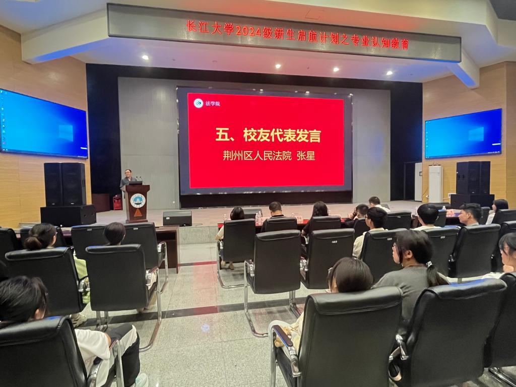 (通讯员 张屾岚/文 何梦秋/摄)为了帮助新生更好地了解学院文化、明确专业发展方向,2024年9月24日,长江大学法学院于西校区农科大楼1058报告厅举办了2024级新生启航计划之专业认知教育活动。法学院党委书记周胜美、法学院院长李华成、副院长杨春磊、校友代表荆州区人民法院张星、教师代表杜厚扬、朱帅、全体辅导员及法学院全体大一新生参与,活动由法学院党委副书记严星主持。