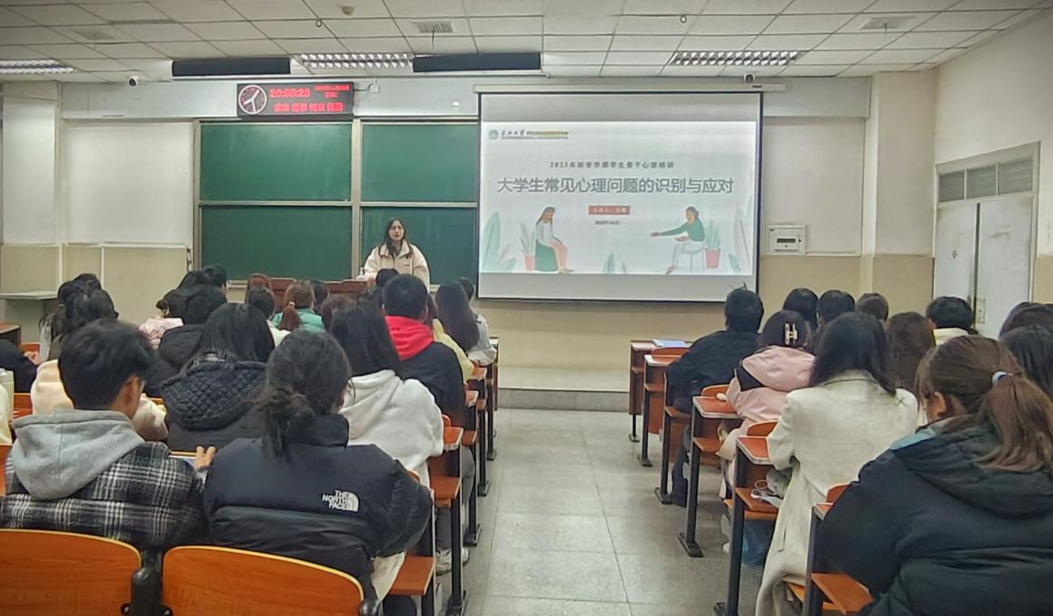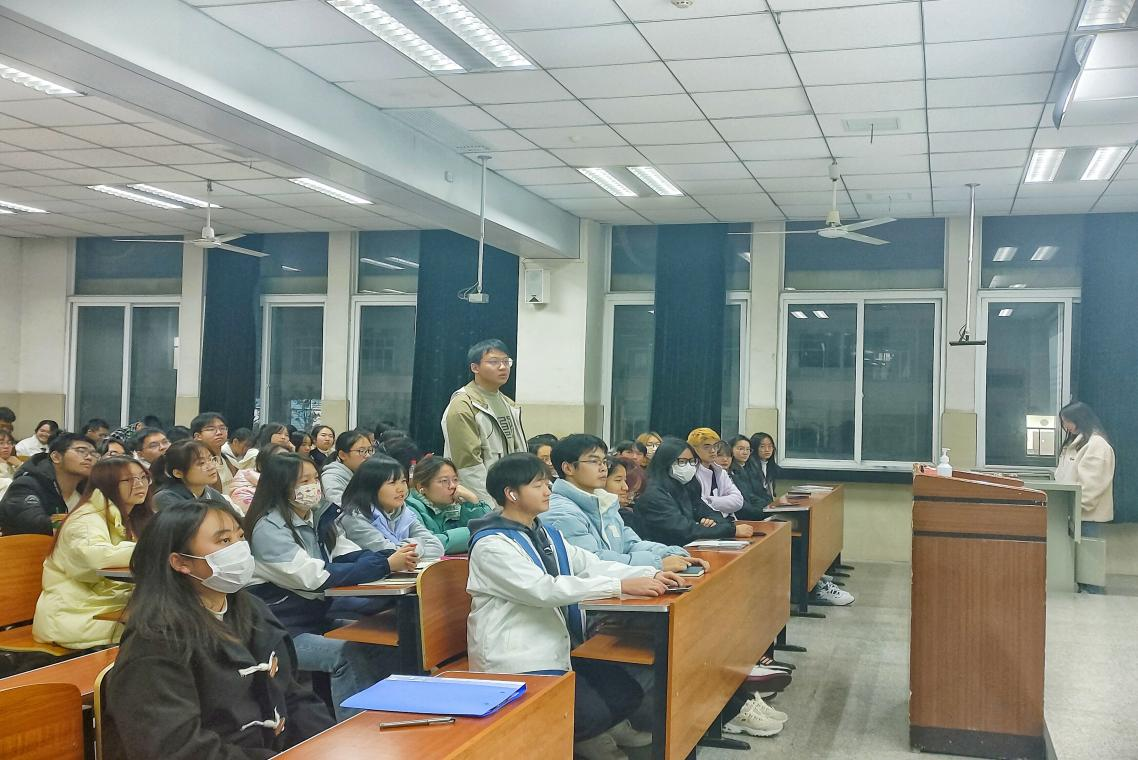 会议伊始,吴敏老师分别就:大学生的心理健康现状;重点学生的识别与关注;向重点学生释放善意;学校心理健康教育工作体系四个方面进行了讲解。让大家了解到心理健康的科普知识,提升自助助人意识,了解“学校-院系-班级-寝室”的四级心理健康教育体系等内容。随后,吴老师对大家关注的大学生心理健康问题进行了全面深刻的介绍,并对大家提出的疑问进行了解答。在面对面的交流中,同学们针对如何及时察觉身边同学的情绪变化、如何正确对待和帮助他人的心理健康问题有了更具体、更深入的认识。