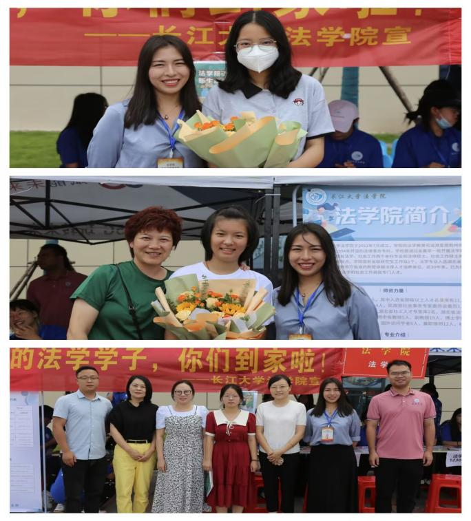 法学院领导老师多次前往迎新点关心慰问新生的报到情况及对学校的初步印象。经了解,法学类12302班王婷婷同学的姐姐是法学院2014届校友,受姐姐的熏陶和影响她也选择报考了长江大学法学院。她说:“在姐姐的引导和亲身的参观下,深深的被校园氛围所吸引,非常庆幸选择了长江大学法学院,希望在未来求学生活中学有所成。”