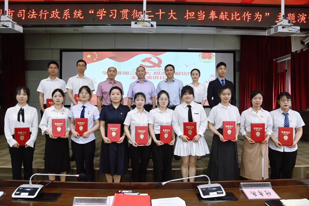 5月19日上午,在荆州市司法局组织开展“学习贯彻二十大、担当奉献比作为”主题演讲比赛中,我院硕士研究生赵世纪作为代表参加比赛,并获得比赛一等奖。