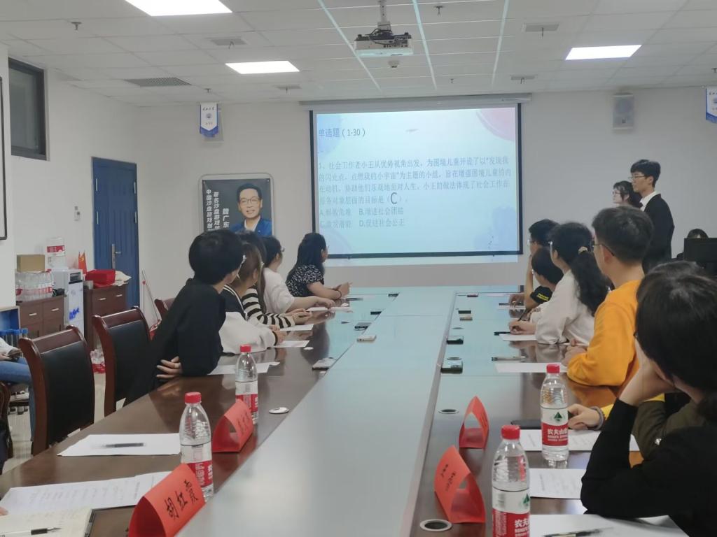 (通讯员 龙冬冬)5月4日下午两点,由法学院主办、长江大学四叶草社会工作协会承办的第九届社会工作理论知识竞赛在长江大学东校区12教101室举行。出席本次活动的领导老师有法学院党委副书记胡红霞老师,社工系主任王蕾老师,张敏敏老师,辅导员盛文军老师。