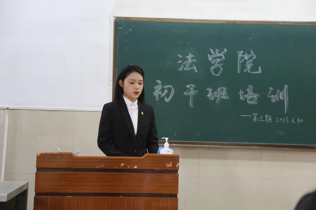 (通讯员 甘宇婷)为深入学习贯彻党的二十大精神,提高学生干部的思想道德素质和服务师生能力,2023年3月30日下午16时,长江大学法学院于东校区12教101教室开展第三期学生干部初级培训班。本次培训由外国语学院分团委书记许泽琼老师主讲,学科部负责人甘宇婷主持,法学院大一学生干部参加。