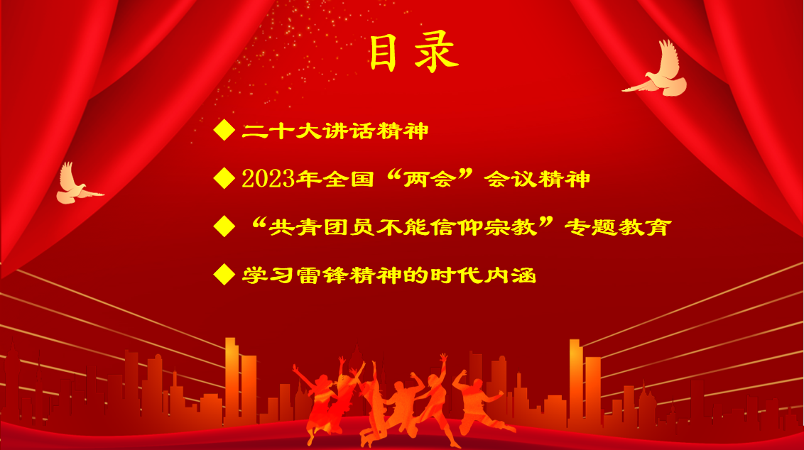 会议伊始,各班班长就“习近平总书记出席中共中央党校建校90周年庆祝大会暨2023年春季学期开学典礼并发表重要讲话”及“中国共产党第二十届中央委员会第二次全体会议公报”相关内容进行了宣读,并开展了共青团员不信仰宗教的专题教育。会上,各班班长强调三月是学习雷锋月,号召同学们发扬“奉献、友爱、互助、进步”的志愿精神,甘作“螺丝钉”,从雷锋精神中汲取奋进力量,积极行动起来,让雷锋精神在新时代绽放璀璨光芒。