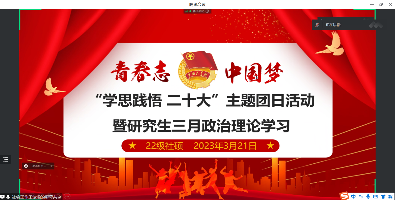 为提升我院研究生政治理论素养,深刻认识和准确把握党的二十大重大主题、重大理论观点、重大战略思想,3月20日至3月25日法学院研究生各班开展了“学思践悟二十大”三月政治理论学习班会。会议由各班班长主持,法学院全体研究生参会。