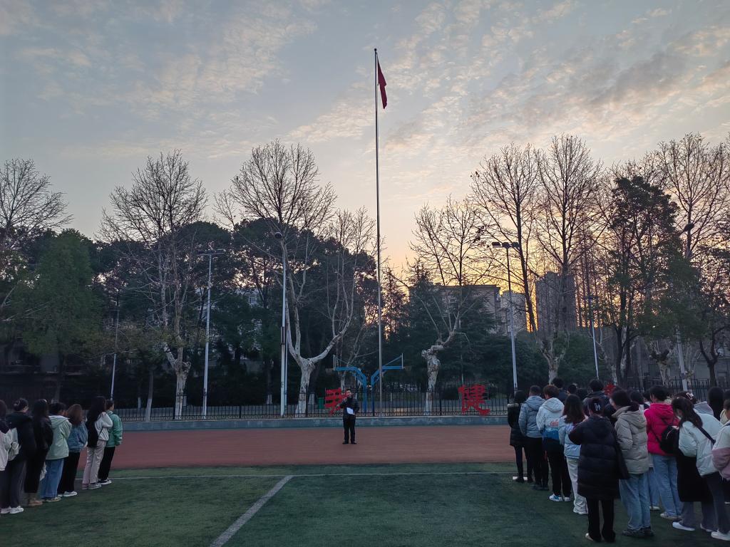 法学院于2月20日早上7点在东校区操场开展升旗仪式。法学院党委书记周胜美、党委副书记胡红霞,辅导员盛文军、雷礼、任豆豆和全体20级、21级、22级本科生参加活动。