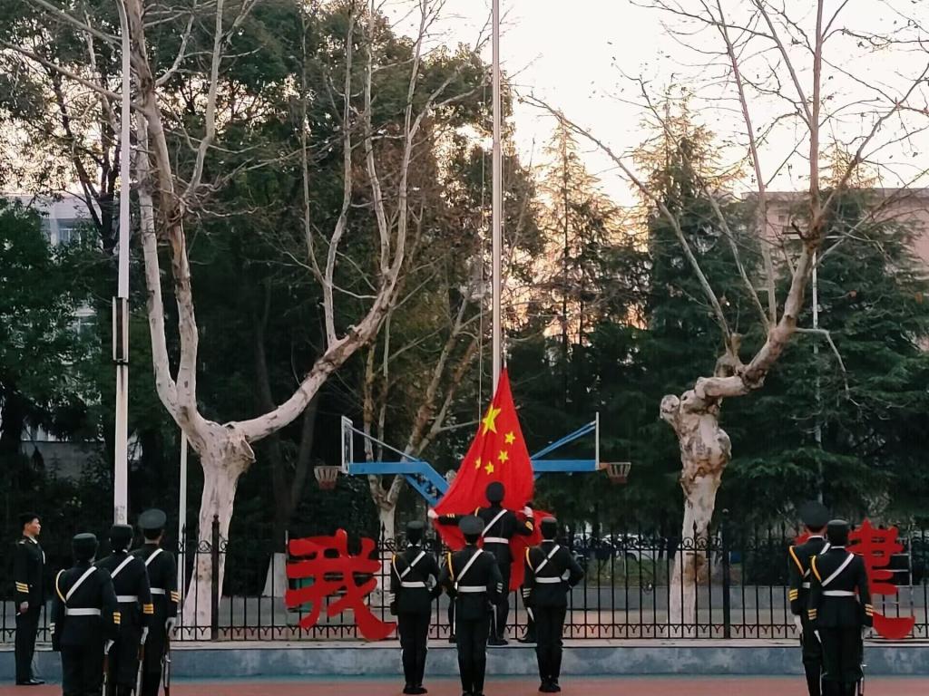 上午7点整,国旗护卫队踏着整齐的步伐走向国旗台,随着国歌的响起国旗冉冉上升,同学们铿锵有力地唱响国歌,深情地注视着国旗。