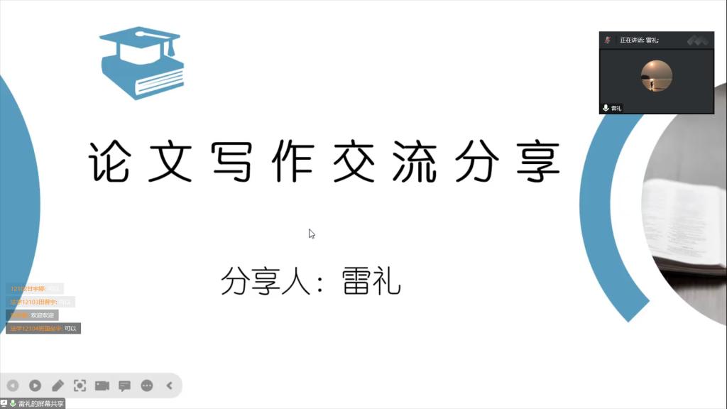 (通讯员周正宇)为提升同学们专业论文写作能力,了解论文写作流程,学习专业论文写作技巧,2022年12月30日下午2点,长江大学法学院于腾讯会议开展论文写作线上分享会,本次培训特邀法学院辅导员雷礼主讲,周宇峰同学主持,法学院部分同学参加参加。