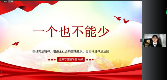 历时半个多月,经过激烈的角逐,各学院选拔推荐,共有26名选手进入预赛。选手们以PPT讲演的方式分享了在中共二十大召开之际的激动和学习宪法知识的感悟,讲述生动,案例典型。青马班学员冯硕同学以“一个也不能少”为题,讲述了中国基层法治的进步,展现了青年大学生的责任和担当,无论过去、现在还是未来,中国青年始终要坚定理想信念,宣传法治精神,用青春献礼二十大;医学院焦洁同学以“共舞”为题,用“烟火气”和“平凡心”作比,生动诠释了“法因人生,人因法存”的观点;法学院赵世纪同学以“宪法的力量”为题,表达了“勇立潮头,普法入民”的铮铮誓言。