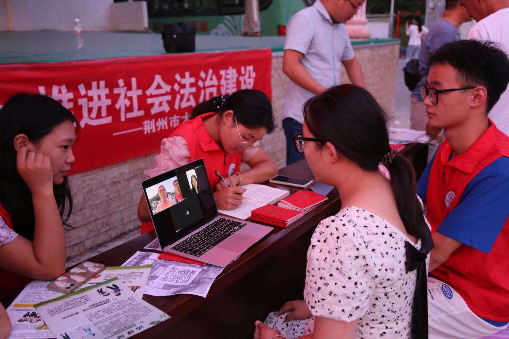 活动伊始,志愿者向周围的居民发放普法宣传单,讲解日常生活中所遇见的一些法律问题,引起居民对法律的关注,增强法律意识。在线上法律咨询活动中,学院特别邀请到法学院杨琳丽老师对村民所咨询的法律问题进行答疑解惑。