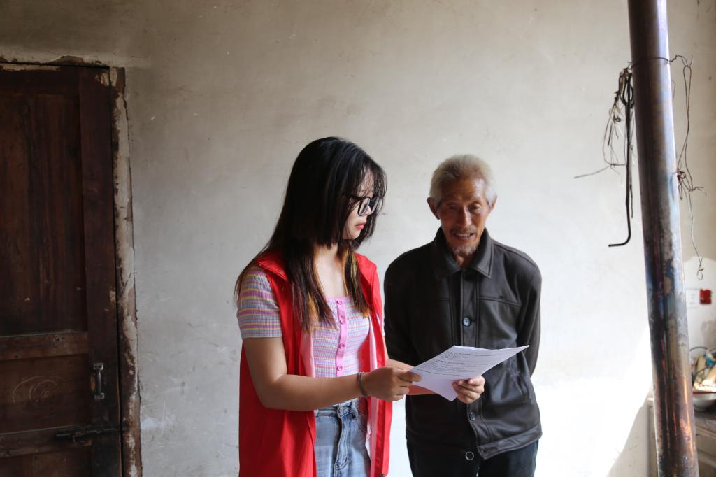 在走访工作前,长江大学暑期普法实践队14名师生志愿者分成2个小组分别开展工作。志愿者到每一户村民家中,面对面、心贴心地与他们交流,询问他们家庭生产生活状况、对法律以及对政府扶贫等相关政策的了解程度,并鼓励村民在日常生活中需要增强法治意识,学法懂法,学会用法律的武器维护自己的合法权益。