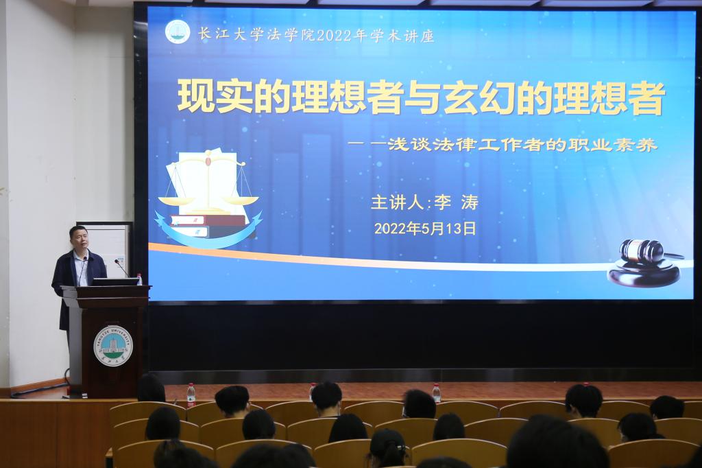 李涛结合他作为检察院检察长的工作经历,从现实的理想者与玄幻的理想者两个角度讲述了具有不同理想法律人职业素养的差异。李涛强调,理想是在现实的基础上产生的,理想必须经过奋斗转化为新的现实,告诫同学们作为一个法律人,不仅要有宏大的理想,更要脚踏实地,通过实践来实现理想。