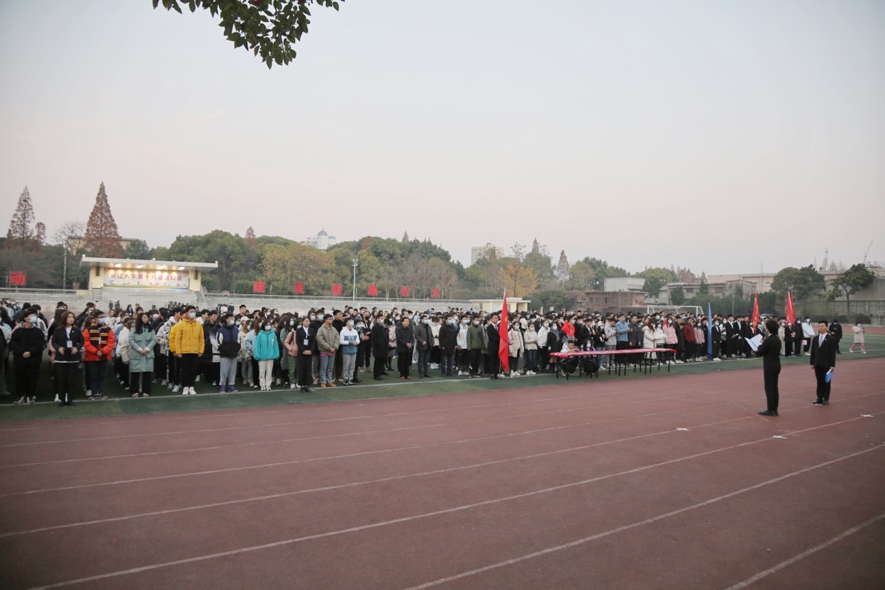 (通讯员 周正宇 徐程)“治国凭圭臬,安邦靠准绳。”在2021年12月4日第八个国家宪法日之际,为响应国家的号召,深入学习宣传习近平法治思想,增强宪法意识、弘扬宪法精神,法学院于东校区田径场举办“宪以启民法以兴邦”主题升旗仪式。长江大学党委学生工作部部长徐波,校团委副书记秦良斌,民革总支主委、艺术学院教授聂贞萍,法学院院领导周胜美、李华成、彭泽君、唐飞、胡红霞等受邀出席,甘浩田同学主持,长江大学各学院及校级组织学生代表参与活动。