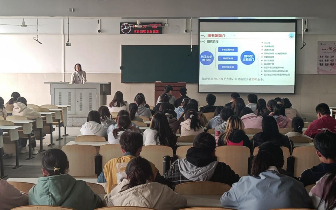 本次讲座中,程老师介绍了图书馆的基本情况,图书馆的组织机构、资源建设、服务模式、规章制度、馆藏布局及开放时间等内容,使得同学们对长江大学图书馆有全面的了解。程老师希望同学们合理安排空闲时间,积极利用图书馆资源,不断促进个人发展。