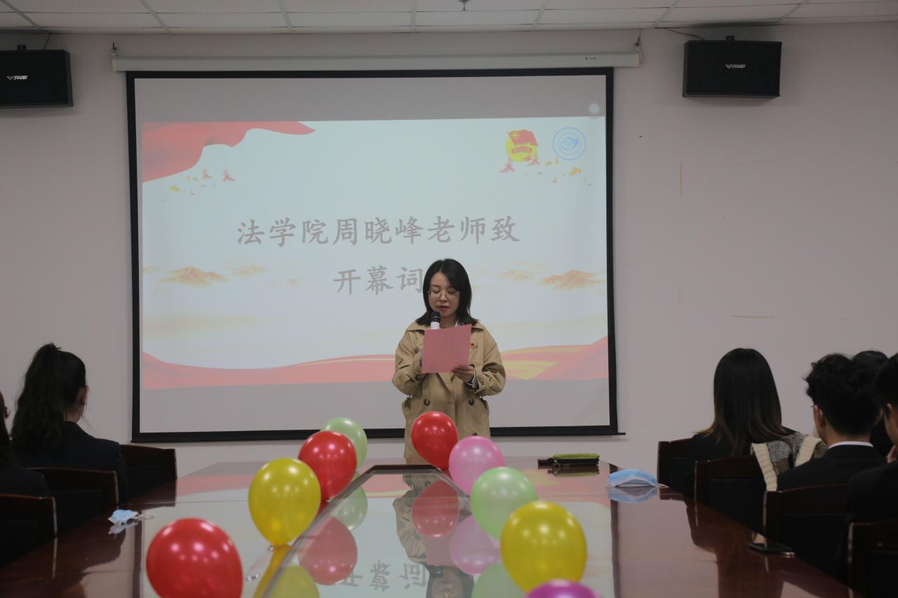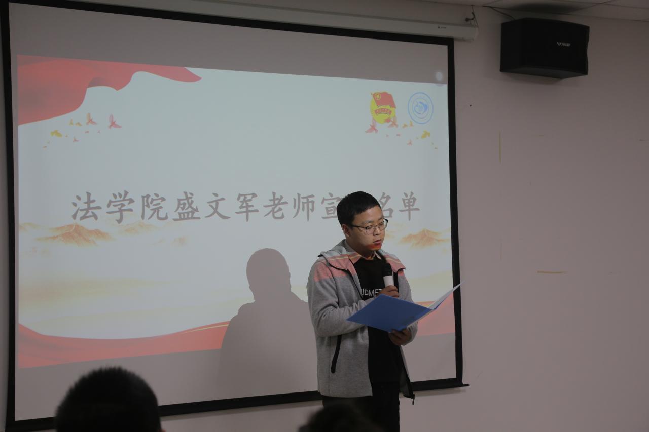 大会伊始,大会全体成员奏唱国歌。随后,周晓峰致开幕词,首先表示了对同学们的欢迎与祝贺,同时也提出了对学生会成员工作几点要求与期待,希望成员们能够不负青春,再创辉煌!随后,由盛文军老师宣读法学院第九届团委学生会成员名单,对新成员的加入表示祝贺,并由学生会执行副主席徐文健带领成员们进行入职宣誓。