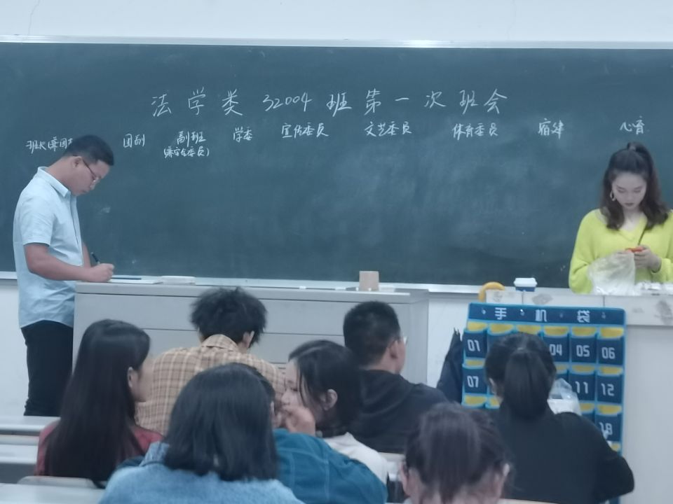(通讯员:解子瑶)10月2日晚7点,长江大学法学类32004班在7教405教室举行第一次班会,班主任盛文军老师,代班陈瑶笳以及全体同学一同参加。