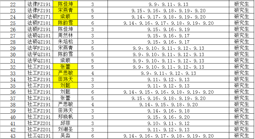 根据学校要求,2020年9月9日-20日组织全体本科生、研究生进行每日辅导猫打卡。经分管辅导员、学工助理、班干部多次提醒,仍有33名同学未在规定时间内完成打卡,具体未打卡次数如下:(表格显示)