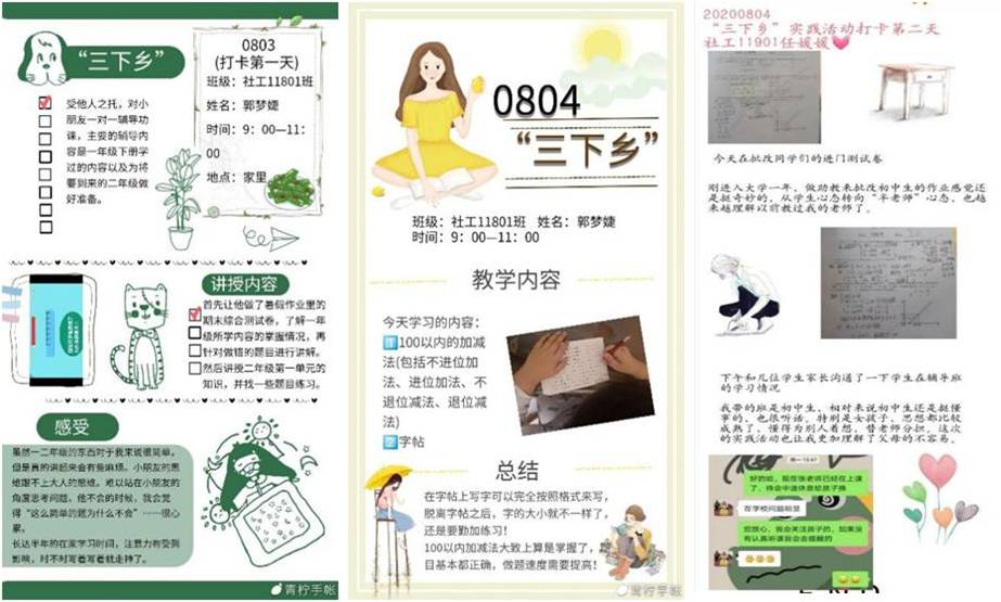 图为志愿者投入在所在地进行社区实践活动的手账记录。