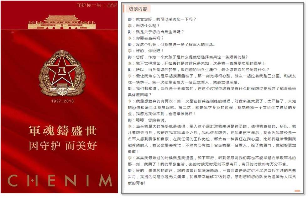 图为志愿者访谈毕业于长江大学的优秀士兵,共述军旅生活。