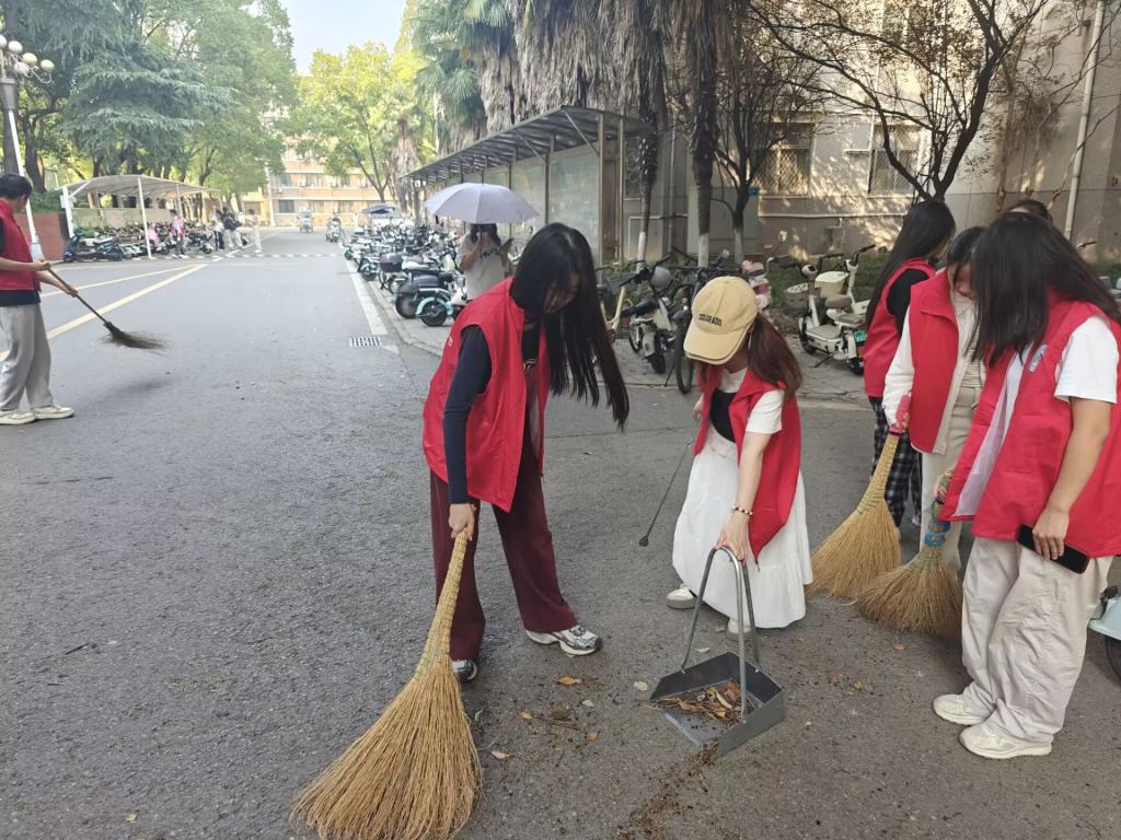 为确保劳动教育实效最大化,活动组织团队在全面总结首周实践经验的基础上,对本次活动的责任区域划分与任务分工进行了进一步细化优化。团队聚焦宿舍楼外公共区域、校园车辆停放点及绿化带周边等卫生重点、难点区域,提前完成清洁工具、垃圾袋等物资的筹备清点,并根据学生特长与区域任务量科学调配人力,为活动有序开展筑牢基础。 劳动现场一片热火朝天的景象。同学们手持扫帚、夹子、垃圾袋等清洁工具,化身认真负责的“校园美容师”,俯下身、沉下心,对草坪深处的隐藏垃圾、路面缝隙里的残留杂物进行细致清理,不放过任何一个卫生死角。从烟头、纸屑到废弃包装袋,各类垃圾被逐一捡拾、分类收纳,大家相互配合、彼此鼓劲,在挥洒汗水中营造出积极向上、团结协作的劳动氛围。经过两小时的集中清扫,东校区生活区周边环境焕然一新,公共区域干净整洁、秩序井然,绿意盎然的绿化带更显清朗雅致,为校园增添了一抹清新亮色。