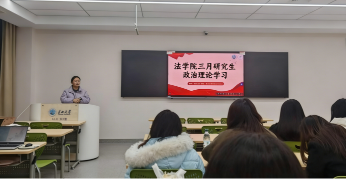 (通讯员 肖芳)近日,我院研究生围绕中央及各级重要精神部署,开展了系统深入的政治理论学习活动。学习内容涵盖习近平总书记在看望参加政协会议的民盟民进教育界委员会时的重要讲话、2025年全国两会精神、全国教育工作会议精神、全省教育大会精神及学校工作部署会精神,旨在引导研究生坚定理想信念、锚定专业方向,将个人发展融入国家法治建设大局。
