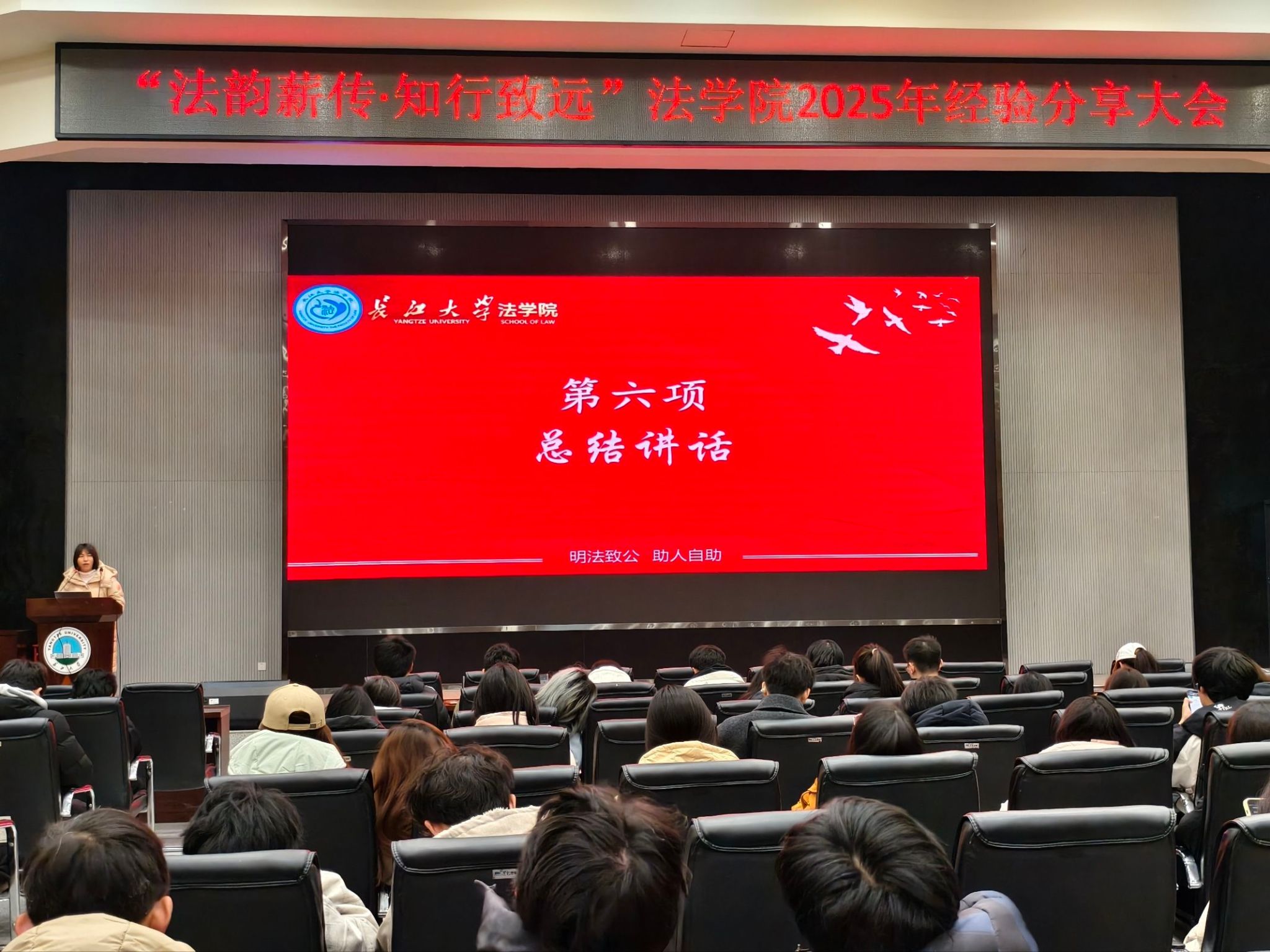 最后,学院团委书记吴敏老师作总结致辞。她勉励全体同学以优秀学长学姐为榜样,及早确立目标、合理规划大学生活,在实践中锤炼本领,成长为有理想、有担当、有作为的新时代法治人才。