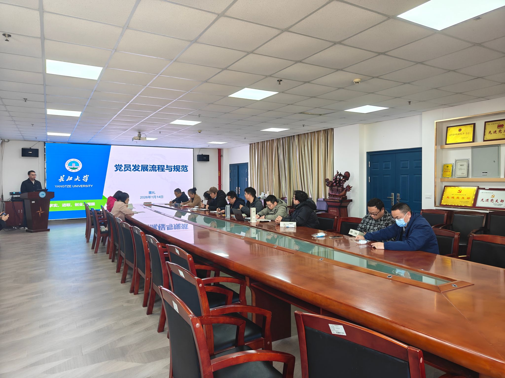 培训环节内容充实、针对性强,各主讲人结合自身工作经验,围绕核心业务模块展开系统讲解。辅导员雷礼聚焦党员发展工作,以《中国共产党发展党员工作细则》为依据,系统拆解了党员发展从申请入党、积极分子培养、发展对象确定到预备党员接收、转正的全流程,重点强调了各环节的规范要求、材料审核要点及注意事项,并结合典型案例警示规避工作中的常见问题,为班主任精准指导学生党员发展工作提供了清晰指引。