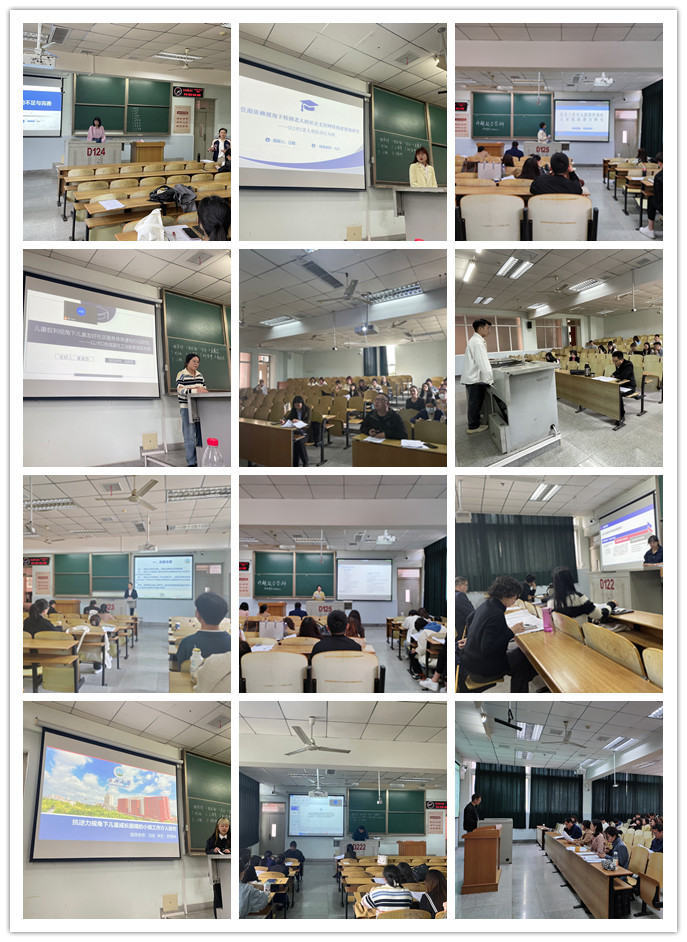 我院法律专业、社工专业各设3个评议组,共21位评委,对60名硕士开题答辩进行评议,其中法律硕士29人,社工硕士31人。答辩研究生用多媒体PPT展示汇报,时间不少于15分钟,期间22级研一参与旁听。