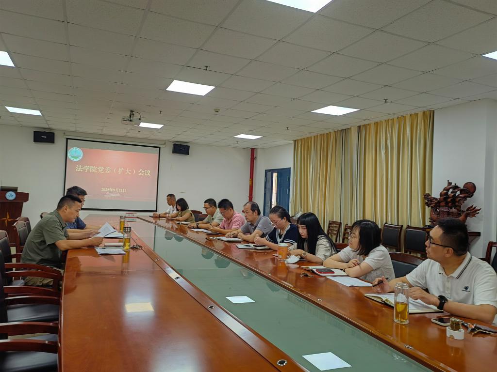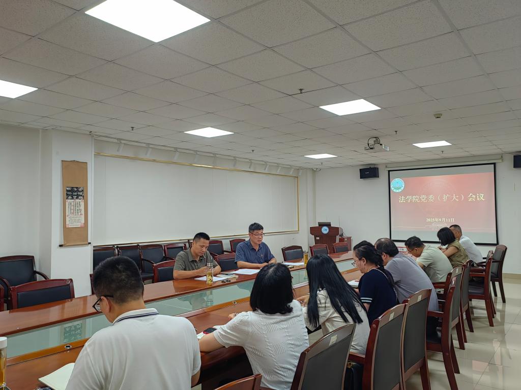 (通讯员 雷礼)9月11日下午,法学院党委扩大会议在文科楼1110会议室召开。会议围绕深入贯彻落实中央八项规定精神,总结学院学习教育成效,并就持续推进作风建设常态化、长效化作出部署。学院领导班子成员、党委委员、各党支部书记及各科室(中心)负责人参加会议。