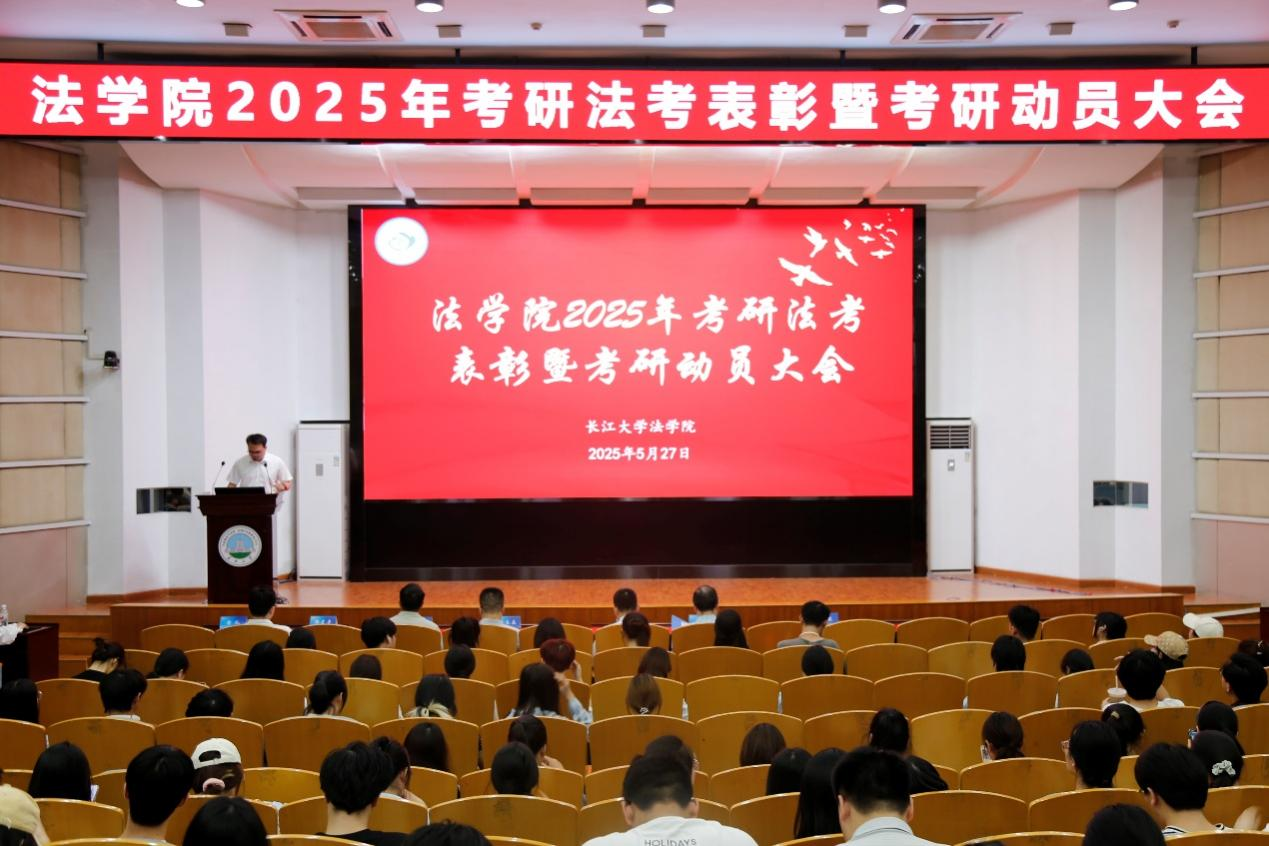 (通讯员 杨翔如)5月27日晚,法学院2026年考研动员大会在12教405学术报告厅举行。院党委书记周胜美,副院长唐飞、杨春磊,学工办主任盛文军、就业专干雷礼参加会议。