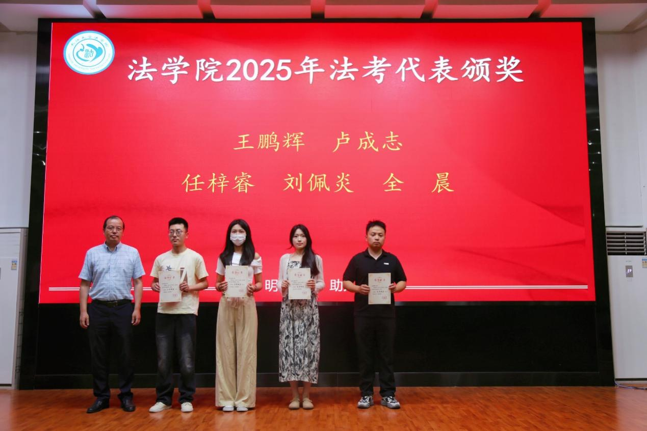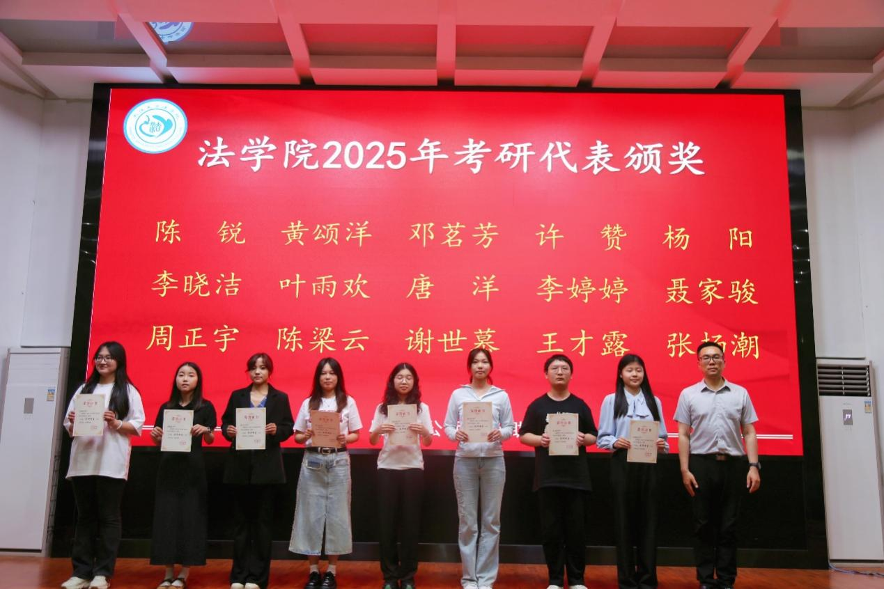 唐飞副院长首先进行了考研动员,他在充分肯定过去一年我院学子在考研、法考中取得优秀成绩的基础上,鼓励2022级本科生发扬艰苦奋斗的拼搏精神,明确目标、勤奋学习、争创佳绩。随后,举行了颁奖仪式,杨院长为陈锐、黄颂洋等26名考研优秀代表颁奖,唐院长为王鹏辉、卢成志等5名法考通过代表颁奖。