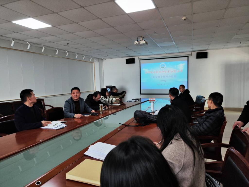 2025年2月27日,法学院成功举办了“求实导师学术沙龙”系列活动,本次沙龙由法学院李华成教授主讲,主题为《社会治理中的刑法依赖》。学院多位研究生导师及学生代表参加了此次活动,现场学术氛围浓厚,讨论热烈。