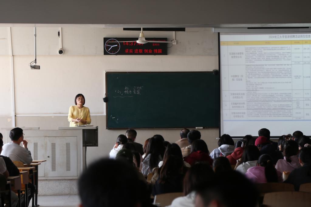 随后,严星老师对2025届毕业生就业动向进行了统计,分析了2025届全国普通高校毕业生的就业形势,并对近年来我院毕业生的就业领域、地域以及考研升学、出国出境的情况进行了介绍。她特别强调大家要树立正确的择业观,对求职注意事项、检索求职信息、树立求职信心等方面进行了讲解。