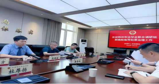 在洪湖市人民检察院,调研组听取了洪湖市法院和检察院相关同志关于轻罪治理的汇报。洪湖市检察院普通刑事检察部张艳军主任和洪湖市法院刑事审判庭杨文庭长指出,近3年来洪湖法检受理承办的宣告刑为3年以下的刑事案件数量和涉案人数均呈增长态势,在涉案类型上有一定的洪湖地域特色,如非法捕捞水产品刑事案件较荆州其他县市偏多。
