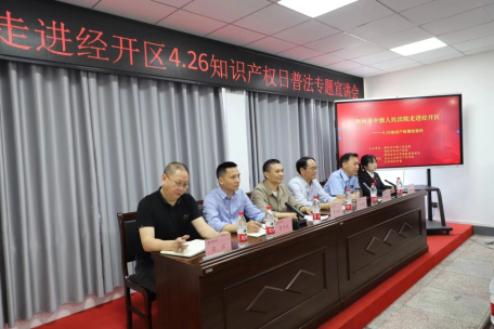 4月26日,正值第24个世界知识产权日,长江大学法学院(知识产权学院)协同荆州市中级人民法院、民革荆州市委会的法官、律师们共同走进荆州经开区,为企业开展了以“知识产权转化运用促进高质量发展”为主题的宣传活动。
