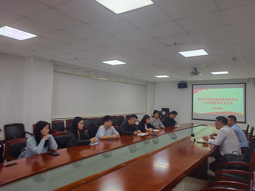 为提供就业与实习机会,加强院所交流合作,我院于4月16日邀请湖北善诺律师事务所前来座谈交流。湖北善诺律师事务所主任王振宇律师、合伙人黄雄律师、法学院党委书记周胜美、副书记严星及部分学生参加座谈。
