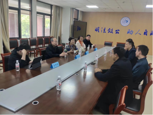 王立君教授一行参观了学院教学实训中心、模拟法庭、社工综合实验室、小组个案活动室等教学场地和长江大学法律服务中心、长江大学基层治理研究中心、长江大学社会救助研究中心等三个科研实训平台以及位于我院的荆州市涉外公共法律中心、荆州市法学会图文信息中心、荆州市妇女儿童维权咨询中心等三个校地协同共建实训场所,王立君教授一行对我院教学设施场地和硬件建设表示高度赞扬,认为我院的办学条件走在了全国同类高校前列。