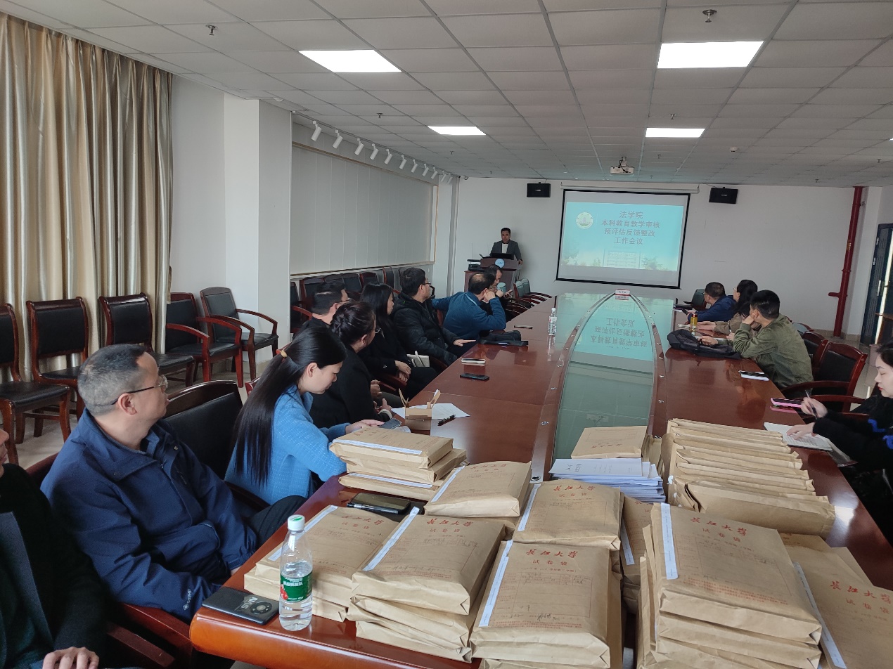 3月21日,法学院全体专任教师和教辅人员召开本科教育教学审核预评估反馈整改工作会议。副院长杨春磊针对前一日学校本科教育教学督导委员会工作小组反馈的意见建议,从熟练运用混合式教学方式、丰富完善PPT课件、教学资料查漏补缺、实验实习计划和大纲完善、实验实习报告批改、审核评估应知应会手册学习等方面,详细布置了迎接本科教育教学正式评估前的具体整改内容。